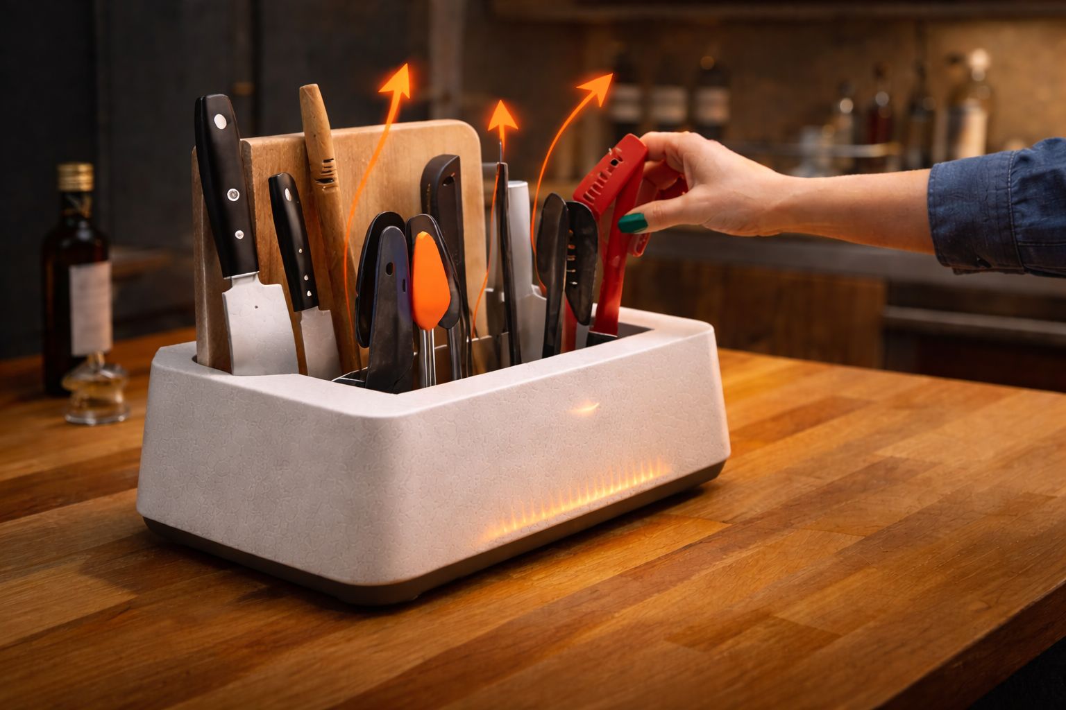 Every kitchen has the same unsolved problem: a damp towel that’s been used 14 times today, and a growing pile of “clean but not really dry” utensils. This device acts like a small, dedicated air-dryer for knives, spatulas, cutting boards, and everything else you wash mid-cooking. Place them in or hold them under (specific design pending), airflow does the rest. No more sacrificing paper towels. No more mystery-smell dishcloth. Just cleaner tools and a slightly more peaceful cooking experience.